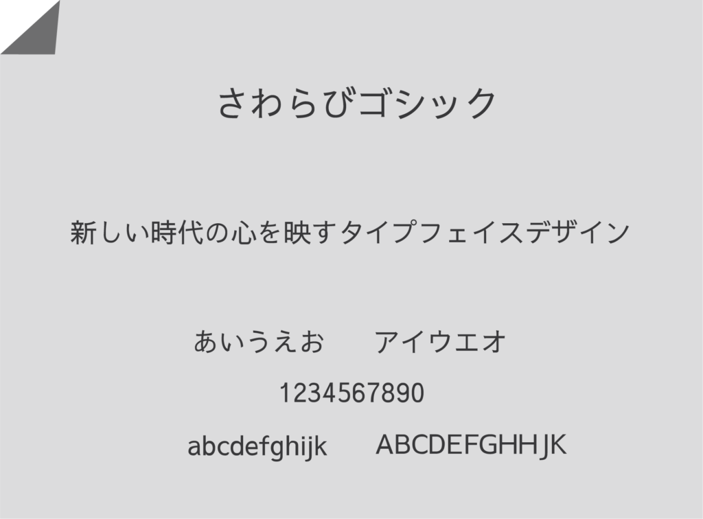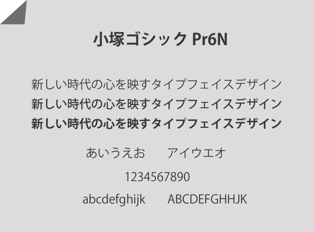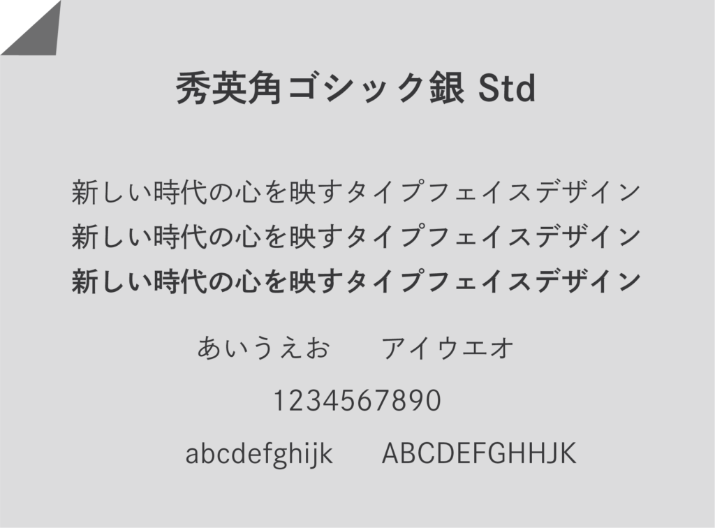 若干のセリフを持ったゴシック体なので、直線的な中にもやや曲線的で温かいイメージが感じられる書体です。