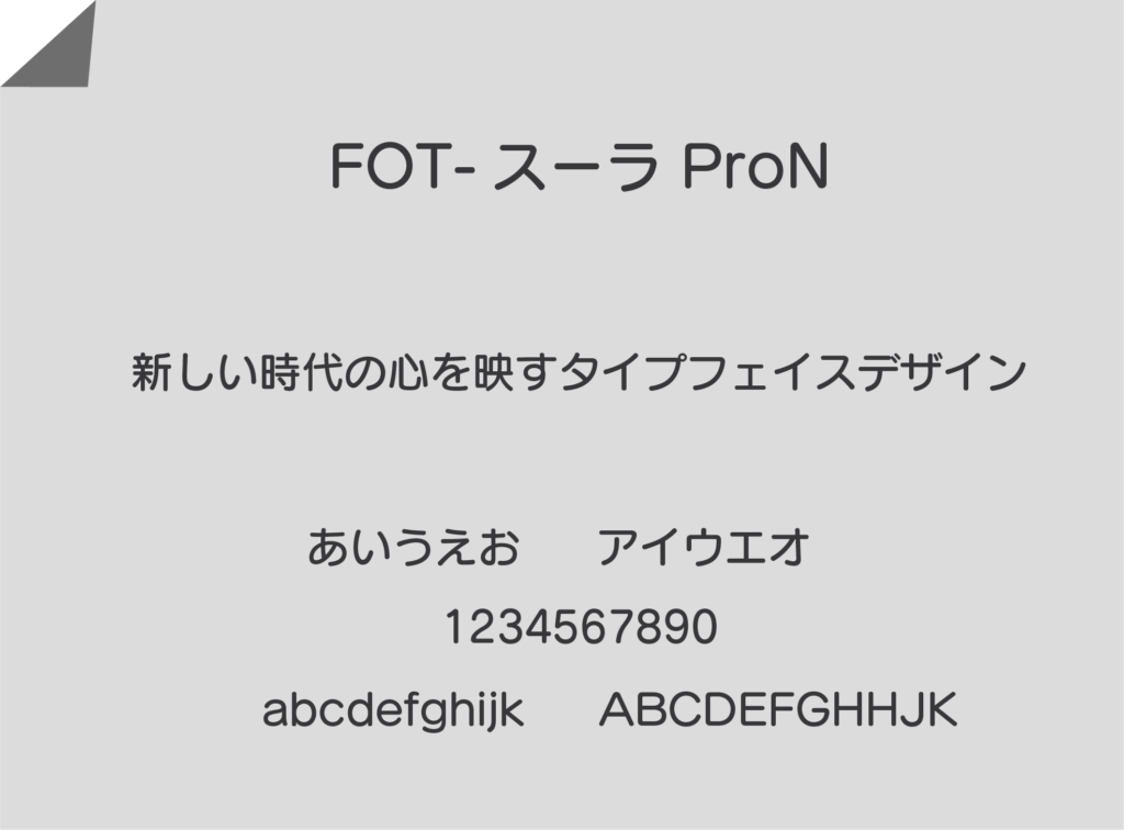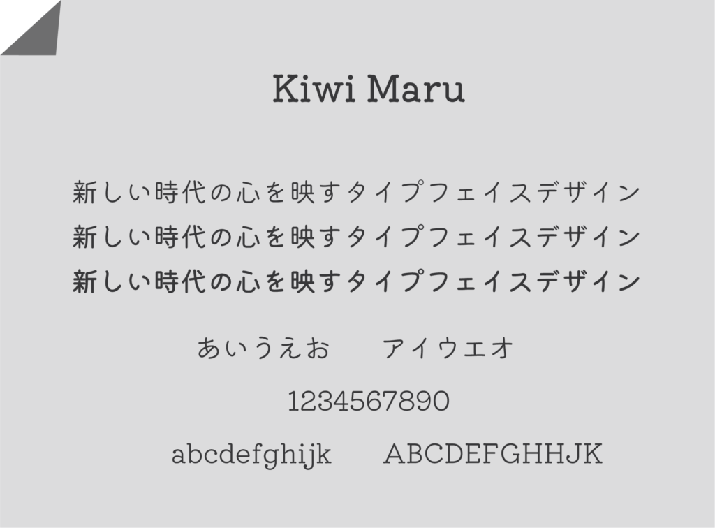 文字面が大きくデザインされ、フトコロも広くとられているため、温かさ、やさしさ、子どもっぽさを感じさせる雰囲気です。